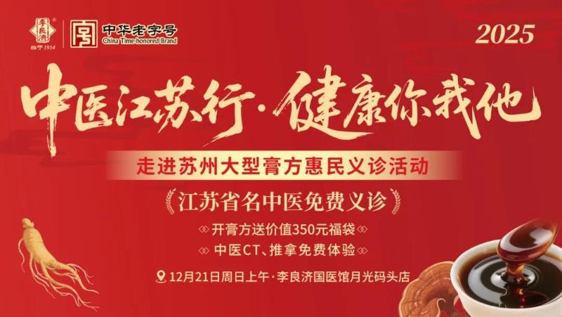 名醫(yī)來到家門口!本周末,省級名醫(yī)專家惠民義診走進李良濟,輕松暢享資深中醫(yī)專家的健