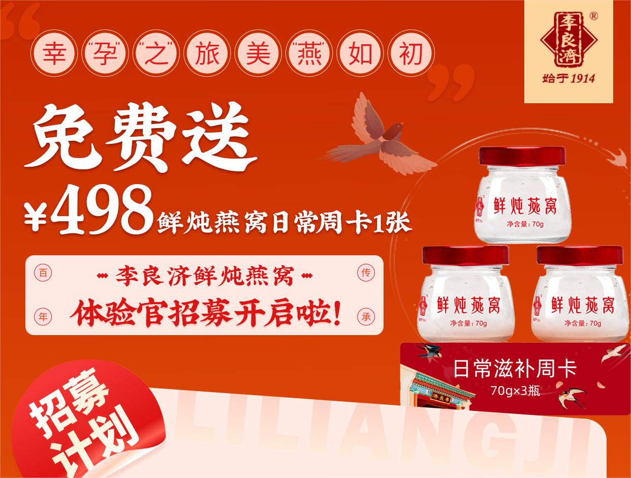 幸運(yùn)之旅,美燕如初 李良濟(jì)鮮燉燕窩體驗(yàn)官招募活動開始啦!助力孕期和哺乳期的姐妹們實(shí)現(xiàn)燕窩自由李良濟(jì)招募50名鮮燉燕窩體驗(yàn)......